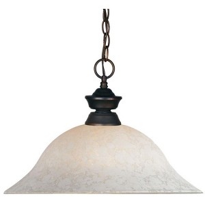 Traditional charm defines this pendant. The hardware is finished in old bronze, and is paired beautifully with a white mottle glass shade for a warm and inviting glow. 36 of chain is supplied to ensure the perfect hanging height. This pendant will bring a traditional and inviting look to wherever it is hung. Game Room Shade Included: Yes Cord Length: 110.00 Dimmable: Yes