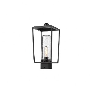 This one-light outdoor post mount fixture creates a fresh, stylish updated village motif as it provides a superb replacement to top an existing post. Embrace a romantic lantern silhouette in an open frame fashioned of black finish steel, admiring a delicate seedy glass cylinder shade nestled within. Weather-resistant materials offer confidence for placing this fixture in a variety of regional settings. Dimmable: Yes Shade Included: Yes