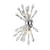 The most fashionable decor schemes embrace out-of-the-box designs, and this crystal and iron four-light wall sconce masters a fresh, stylish ambiance. Emulating an explosive display, its chrome finish trim and wall mount lends a perfect complement to elegant crystal stems. Bathroom/Powder Room/Bedroom/Hallway Shade Included: Yes Dimmable: Yes Material: Crystal, Finish Color: Chrome, Width: 9.63", Height: 24", Length: 14", Depth: 14", Backplate Width: 4.75", Backplate Length: 4.75", Lamping Type: Incandescent, Number Of Bulbs: 4, Wattage: 60 Watts, Dimmable: Yes, Moisture Rating: Dry Rated