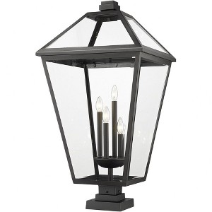 A transitional-style frame with bold glass panels make this a truly timeless collection. Offered in wall mount, pendants and even post lights, the Talbot family is available in two finishes, Midnight Black with Clear beveled glass panels or Rubbed Bronze with Seeded Glass Panels. Room Recommendation: Outdoor Living/Deck/Patio Dimmable: Yes Shade Included: Yes