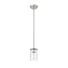 Alone in a powder room or in series over a kitchen island, the Thayer modern one-light pendant is a charming choice with refined style. Its timeless design is highlighted with chic curves and elegant simplicity, perfect for creating a welcoming, refined ambiance within your home. A brushed nickel finish is cool and sleek, perfectly complementing clear glass that allows for true, bright illumination great for both ambiance and tasks.