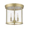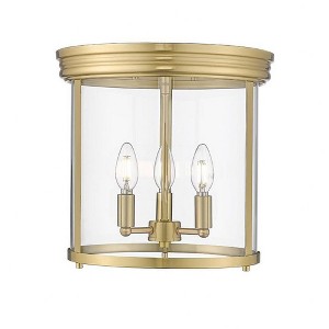 Create a rich, welcoming ambiance in your foyer or living area with a modern three-light flush mount ceiling light. Designed for the Thayer collection, it's a timeless presentation that features a sleek cylinder of glass tucked into a brushed nickel finish framework that offers refined, inviting energy in any setting. Material: Steel, Finish Color: Brushed Nickel, Width: 13", Height: 13", Length: 13", Lamping Type: Incandescent, Number Of Bulbs: 3, Wattage: 60 Watts, Dimmable: Yes, Moisture Rating: Damp Rated