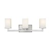 This three light vanity fixture provides a clean modern look with its use of rectangular matte opal shades and brushed nickel geometric inspired hardware. This fixture can either be hung up or down, depending on the needs of the user. Material: Glass, Finish Color: Brushed Nickel, Width: 23.25", Height: 8", Length: 5", Depth: 5", Backplate Width: 4.5", Backplate Length: 8", Lamping Type: Incandescent, Number Of Bulbs: 3, Wattage: 100 Watts, Dimmable: Yes, Moisture Rating: Damp Rated