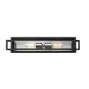 Exquisitely crafted with bold, black lines surrounding a gleaming, brushed nickel frame, this two-light vanity will illuminate your home in style. This handsome fixture looks especially elegant when placed over a bathroom mirror. Bathroom/Powder Room Mounting Direction: Up/Down Dimmable: Yes Material: Steel, Finish Color: Black/Brushed Nickel, Width: 24", Height: 4.75", Length: 4.25", Depth: 4.25", Backplate Width: 4.75", Backplate Length: 21", Lamping Type: Incandescent, Number Of Bulbs: 2, Wattage: 60 Watts, Dimmable: Yes, Moisture Rating: Damp Rated