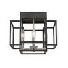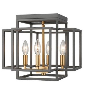Sleek black and brushed nickel finishes grace the geometric style frame of this four-light flush mount light. Bring a crisp modern fixture to lower-height ceilings with the mixed motif personality of this steel-crafted light that showcases romantic candelabra-style bulb bases. Bedroom/Dining Room/Foyer/Hallway/Kids Room/Kitchen/Living Room/Office/Utility Room Dimmable: Yes