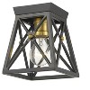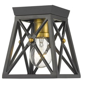 Indulge in an exercise of geometrics and stunning interior decor, adding this single-light flush mount ceiling light to a compact living space. Dramatic Matte Black delivers a bold finish to a cage-style metal shade that nestles a wide bulb mount with a rich Old Brass finish, creating a custom look for a transitional setting. Bedroom/Dining Room/Foyer/Hallway/Kids Room/Kitchen/Living Room/Office/Utility Room Dimmable: Yes