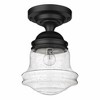 Vaughn Steel Flush Mount Light - 1 Bulb, Dimmable, Damp Rated, Vintage Style
