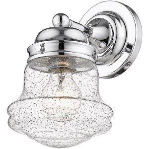 Low-key and tasteful, this one-light wall sconce from the Vaughn collection lifts the mood in a casual space with a charming village-inspired theme. Blending nautical with industrial, this sconce features matte opal schoolhouse glass in a unique shape, nestled to a striking matte black finish steel frame with a dimensional round wall mount and holder and an extra accent piece. Dimmable: Yes Shade Included: Yes