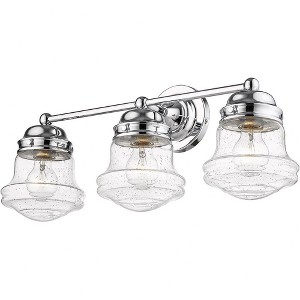 Charming schoolhouse style shades crafted of matte opal glass tell the story of a nautical industrial theme that lends a ton of style to this three-light vanity light. Perfectly suited for a traditional or transitional bath space, this light from the Vaughn collection contrasts bold matte black steel with opal glass, delivering a striking look that is timeless and elegant. This light fixture stands out as a central focus. Dimmable: Yes Shade Included: Yes