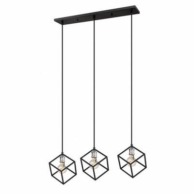 Modern 3-Light Pendant - Steel Vertical Design, Dimmable, Eclectic Cube Shades, 18" x 11"