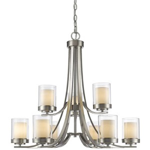 Clean, graceful lines of the arms + glass shades define the Willow family. Brushed nickel fixtures and inner matte opal with clear outer glass shades create clean and unique designs. Dining Room/Foyer/Great Room/Hallway/Kitchen Shade Included: Yes Cord Length: 110.00 Dimmable: Yes Material: Steel, Finish Color: Brushed Nickel, Width: 31.25", Height: 29.25", Chain Length: 72", Lamping Type: Incandescent, Number Of Bulbs: 9, Wattage: 100 Watts, Dimmable: Yes, Moisture Rating: Dry Rated