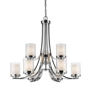 Clean, graceful lines of the arms + glass shades define the Willow family. Chrome fixtures and inner matte opal with clear outer glass shades create clean and unique designs. Dining Room/Foyer/Great Room/Hallway/Kitchen Shade Included: Yes Cord Length: 110.00 Dimmable: Yes Material: Glass, Finish Color: Chrome, Width: 31.25", Height: 29.25", Length: 31.25", Chain Length: 72", Lamping Type: Incandescent, Number Of Bulbs: 9, Wattage: 100 Watts, Dimmable: Yes, Moisture Rating: Dry Rated