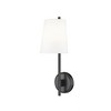 Classic traditional style takes on a modern twist in this light, airy one-light wall sconce from the Winward collection. With a rounded backplate and tubular arm made of brushed nickel finish steel and a tapered white fabric shade, its versatility stands second to tasteful elegant personality. Bring targeted lighting to a bath, hallway, or main living space with this updated fixture. Dimmable: Yes Shade Included: Yes