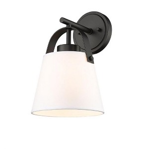 Weaving in a bit of nautical personality, this one-light pendant from the Z-Studio collection embodies versatility and charm. This fixture reflects a hint of farmhouse charm, coastal ease, and casual elegance all in one, with an open ivory fabric conical shade and ornate framing in brushed nickel finish steel. Explore possibilities in a casual living space with a wall sconce that embellishes an easy, carefree living space.