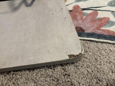 The corner of the wood was chipped off when I opened it and the black paint is chipped off in multiple spots.