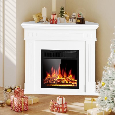 ZAFRO 44" Electric Fireplace with Mantel Package Freestanding Fireplace Heater Corner Firebox with Log ,750-1500W,Grey