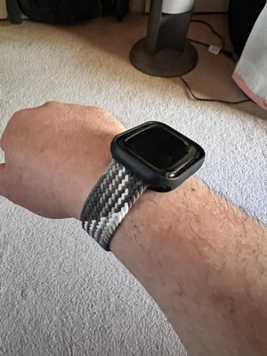 This is so much more comfortable than the original band I got with the watch. I have gotten really sensitive to the build-up of sweat that forms under the silicon band, so was looking for something different. This works so well for me. It has enough stretch to get it on comfortably, but is tight enough to hold it in place without extra movement on my wrist. I was going to purchase a larger size, but decided to take the extra 3 minutes to measure my wrist, and I'm so glad I did, as I ended up getting the smaller band, which fits perfectly.