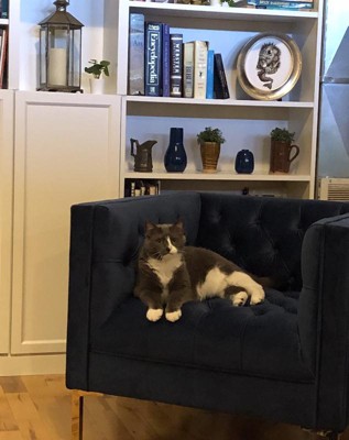 Super easy to assemble—you only need to put the legs on. Very classy. Makes a great accent chair or cat throne.