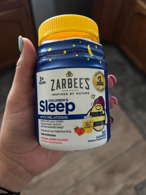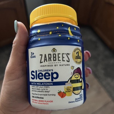 Zarbees sleep, melatonin natural berry flavor with a hint of honey taste great, and do the trick. My little one is asleep within 30 minutes after having a hard time I love the little honeybee on the package and it’s a great value for the money.