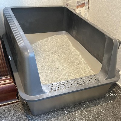 Purchased this even though there were no reviews other than one other five star but it didn’t have any details so I wanted to give some.. So glad I purchased. Really sturdy box. Love how large it is. I only have one cat who is about 12 pounds. She has a lot of room. Litter does not stick. And the annoying scratching on plastic has been eliminated. I like that it comes with a scoop that can hang on the side of the box. But I wish the scoop had narrower slots. They are a bit wide and sometimes clumps or pieces fall through the slots when scooping. The front entrance of the box has a grated area that is supposed to help catch litter. But that doesn’t work so well. That’s fine because I don’t think my cat would use it anyway.