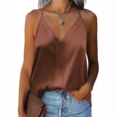 Zeagoo Womens V Neck Tank Top Cap Sleeve Tank Blouse Tee Lace Trim Casual Shirt Light Brown S