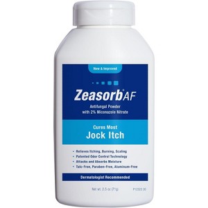 Zeasorb Super Absorbent Antifungal Treatment Powder is a dermatologist-recommended solution for treating and preventing jock itch and other fungal infections. The powerful antifungal formula not only treats jock itch but also works to absorb excess moisture, reducing the chance of fungal growth and irritation. Zeasorb's patented odor control technology fights odors associated with sweating and fungal infections, keeping you feeling fresh throughout the day. Infused with bentonite clay, it helps absorb moisture, while aloe provides soothing relief to irritated skin. The convenient 2.5 oz bottle makes it easy to apply the powder wherever needed, giving you targeted relief from discomfort caused by jock itch.