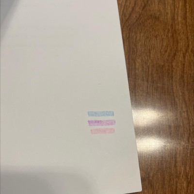 When I bought these I didn’t see any sample pictures showing what each color looks like so I tried to get good ones to post here. Ine is with the flash and the other is under a light in my kitchen. It’s pretty difficult to see the cream color, on the same line I put what the cream color looks like with three lines one under the other (I hope that makes sense, I stacked the lines as if highlighting larger words) and it is more noticeable (but the words in my Bible are a size 9 font and I would only need one line so I’m interested to see how it looks in there) and to the right of that sample I highlighted 2-3 times to get a darker color and that’s what that looks like. These are alright, not my favorite but I like them overall. I wish the cool grey was more of a warm grey, but that’s personal preference.