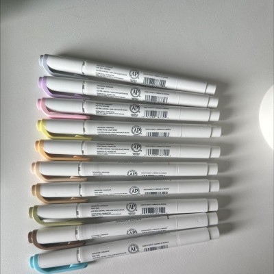 Love these for using to color code in my planner - so much easier on the eyes! The colors are beautiful, softer, muted, and I like the way they work together. If you’re going to use these to highlight over gel ink you gotta give the ink a few seconds to dry so it doesn’t smear - works great over Uniball inks, Pentel inks with a few beats to dry first. Loved finding these in my Target!
