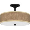 Zen's serene design is appropriate for almost any room and brings a natural exotic feeling into your home. The oatmeal rattan shades are tightly woven and surrounded with a coordinating trim and monochromatic color palette keeps the design tasteful and versatile. Available as either a flush mount or semi-flush mount, Zen is the perfect lighting addition to any hallway, foyer, closet, bedroom or even home office.