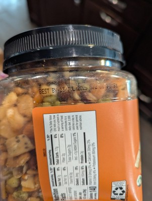 The Zen Party Trail Mix from Good & Gather™ is perfect for the savory snacker. Made with rice crackers, sesame sticks, fried green peas, almonds, cashews and wasabi peas, this mix offers a bit of spice amidst a heap of crunch. The resealable jar makes it easy to store and keep the mix fresh, while the 21-ounce size provides several helpings for a snack you can enjoy for days. Whether you need something to stash in your car console or simply love to have a crunchy snack at home, this trail mix brings unique flavor to your snack drawer.