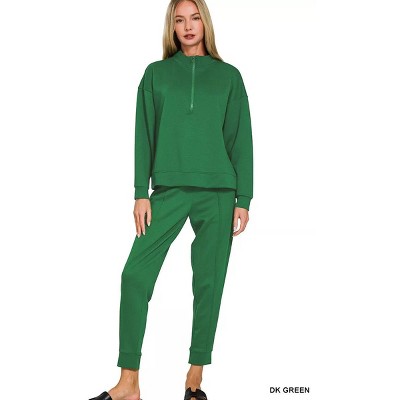 Product Name: I Am a Fashion Junky Zenana Scuba Half Zip Pullover and Jogger Set