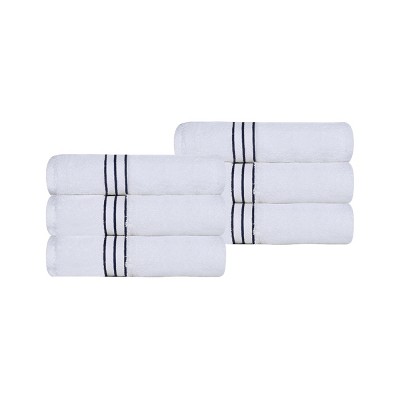Zero Twist Cotton Ribbed Modern Geometric Border Hand Towel Set of 6, Navy Blue - Blue Nile Mills