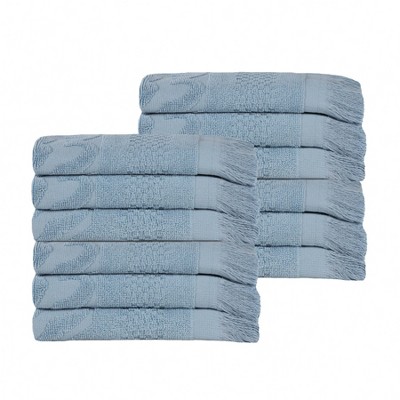 Pamper your skin every day with the Zero Twist Cotton Solid and Jacquard Floral Absorbent Face Towel Set by Blue Nile Mills. Our fluffy cotton face towels have a luxuriously soft feel with versatile absorption, ideal for cleaning up spills or as an accessory to your daily bathroom routine. The unique zero twist weave is plush, and highly-absorbent to get you dry quickly. For added style, each piece in this bundle features both an elegant floral jacquard pattern and solid pattern with a hanging loop for effortless drying. These towels are available in white, ivory, platinum, navy blue, stone, gold, forest green, charcoal, and chocolate color options to match your bathroom decor style. Bring a modern flourish to any bathroom or kitchen with these small towels. This set of daily essentials includes 12 washcloths that can also be used as face towels.