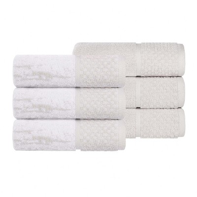Zero Twist Cotton Solid and Floral Jacquard Hand Towel Set of 6, Ivory - Blue Nile Mills