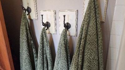 No matter how many times we wash these towels they shed all over us. They started falling apart after the first was too. Strings everywhere. They do not look at all like the pictures and are super thin. Would not recommend. If we could return them we would. Absolutely awful.