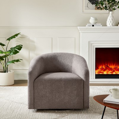 Zeus & Ruta 31.89" Modern Chenille Swivel Chair with 360° Barrel Design & Tufted Back, Wheat