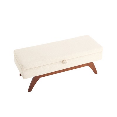 Zeus & Ruta Teddy Wool Fabric Bed End Stool with Solid Wood Feet and Storage Function