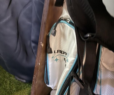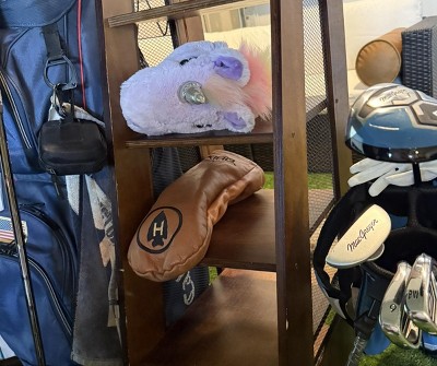 Zevemomo Wooden Golf Bag Organizer and Storage Rack, 2 Golf Bag Storage Rack with Wheels, for Garage, Suitable for Garage Home Golf Club, Brown
