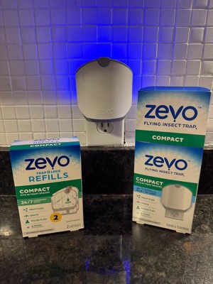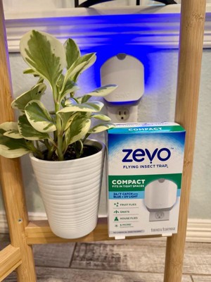 REFILL - Device sold separately. Compatible with Zevo Compact and Zevo Plant Flying Insect Trap. Ensure your home is protected from flying insects with the Zevo Compact Flying Insect Trap Refill. Captures flying insects onto an adhesive backing that you never have to touch. Use in the Zevo Indoor fly trap to attract flying insects (house flies, fruit flies, and gnats) throughout your home for 24/7 continuous protection. Zevo Indoor Fly Traps attract household pests using a unique combination of blue and UV light to trap pests on an easy-to-change trap cartridge. For best results, place Zevo Indoor Fly Traps in an outlet close to where you normally see flying insects; avoid competing light sources like windows. Ideal for use in tight spaces like RVs, apartments and dorm rooms and near house plants. Also great to use in kitchens, bathrooms, garages, and living spaces or near sources of food such as fruit bowls, bananas, apples, strawberries, trash cans, doors, house plants, etc. Check your cartridge regularly by pulling up on the tab; replace the cartridge when it's full of insects.
