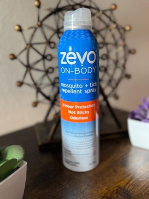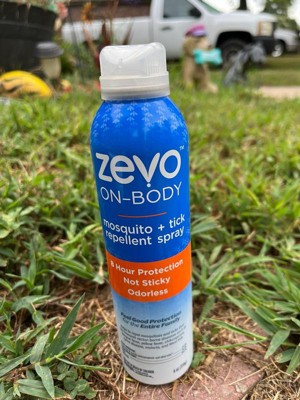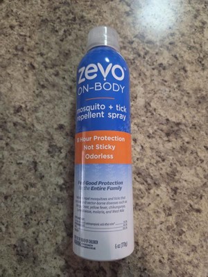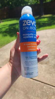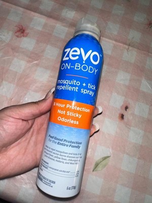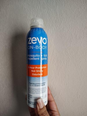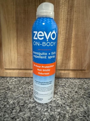 Don't let bugs get in the way of your outdoor adventure. Zevo On Body Mosquito & Tick Repellent provides protection for the whole family. The lightweight, non-sticky formula feels good on your skin and it's odorless, so you don't have to bring the smell of bug spray with you as you explore the outdoors. With a quick, no touch application, Zevo On Body aerosol enables fast, even application that dries quickly. It provides up to 8 hours of protection against mosquitoes and ticks without a greasy feel or over powering scent - perfect for a day in the backyard, walking your dog, enjoying a hike in the woods, or a night of camping. Keep out of reach of children. See the label for other precautions and usage instructions.