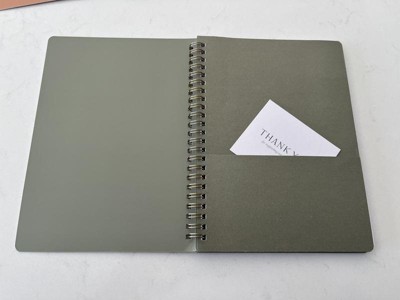 Great little notebooks. I like the size of these notebooks, they are not a full size and not too small. They are also fairly slim, but contain ample pages. Great to put in a purse/bag. The colors are nice and neutral. The pages are easy to turn with the wire spiral. The front page has a nice pocket on both sides of the page, nice for tucking little notes in.