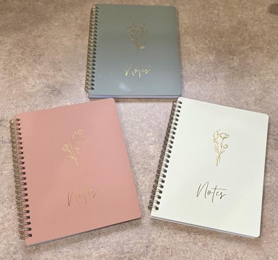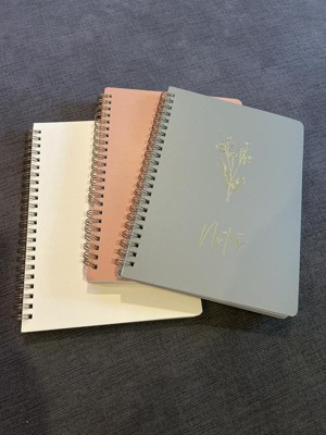 I received these set of three spiral notebooks in separate shades, so it's easy to identify the one I need to journal in, or take notes, or just to organize my grocery list ! Beautiful and convenient!