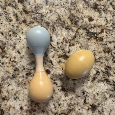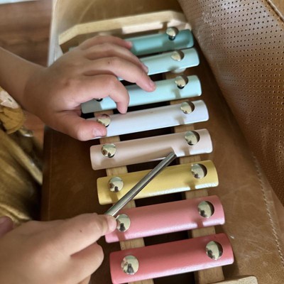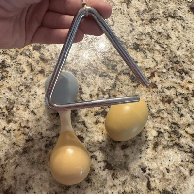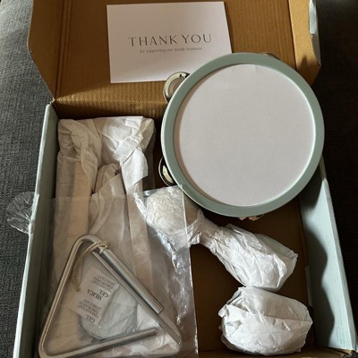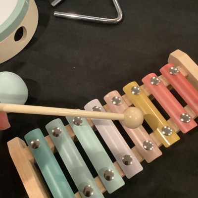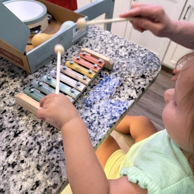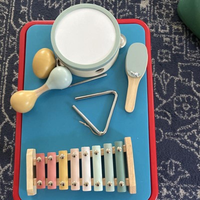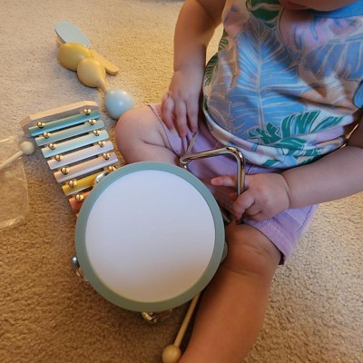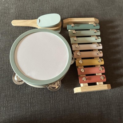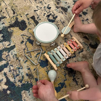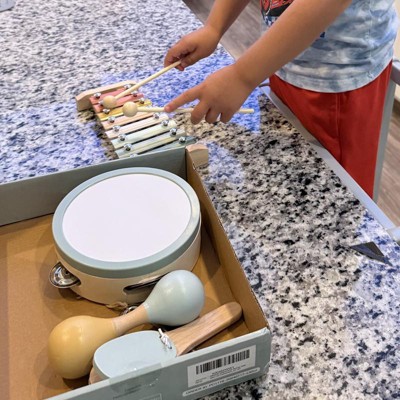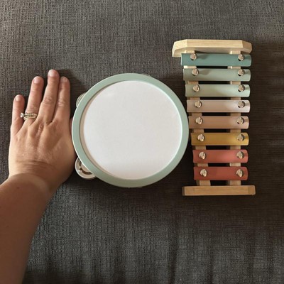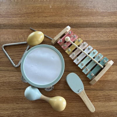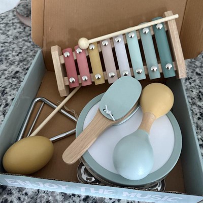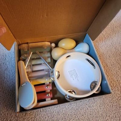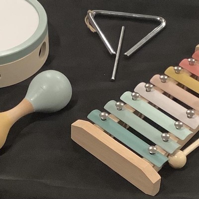 [This review was collected as part of a promotion.] So fun! My baby loves all things music or noise-making, and these are easy for him to use especially now that he can sit! My son likes hearing me play any of the instruments, and as he grows and develops hand eye coordination he is increasingly able to use the triangle or xylophone, while the maracas are great even for younger babies. The pastel color is nice, I like that it’s colorful but softer tones. I received an incentive to write this review.
