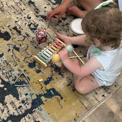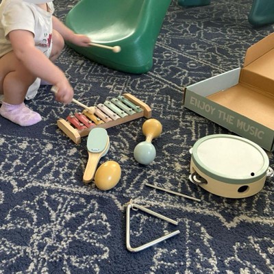[This review was collected as part of a promotion.] This musical instrument set is adorable and has fun colors for a toddler. My daughter who is 23 months enjoyed it a lot and mostly loved the xylophone and triangle. My son who is almost five had fun playing with her as well. Some of the shaker toys do not make that much noise and were pretty boring. We have other shakers that do more. Also one of the balls (choking hazard) came off the end of one of the sticks while my son was using it. It says it’s for toddlers but then also is labeled for three and up so that’s a little confusing as well. Overall, it is a cute set and aesthetically pleasing but not sure if it’s the best musical instrument set out there. I received an incentive to write this review.