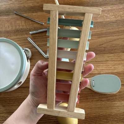 [This review was collected as part of a promotion.] Surprised by the price of the toy set. Might be one of the great toys bought for my daughter but from a noise perspective time may tell! It’s a cool wooden instrument set that came out the box and she instantly started using it. The reaction: might be one of her favorite toys for the time being. It seems pretty durable. The drum is a thin fabric and I hope it holds well. Overall a cool gift and toy set that can be engaging for kids who love music. I received an incentive to write this review.