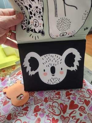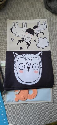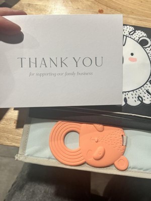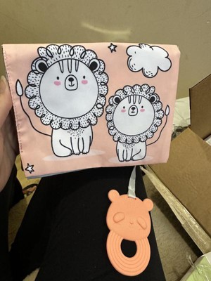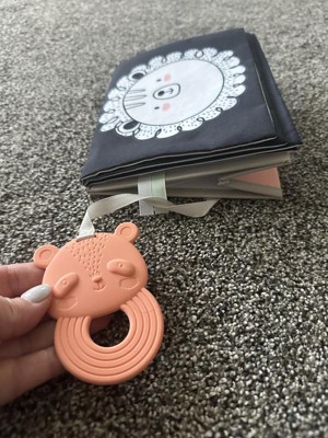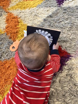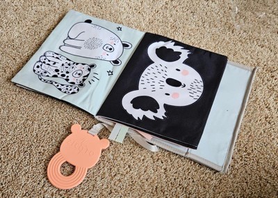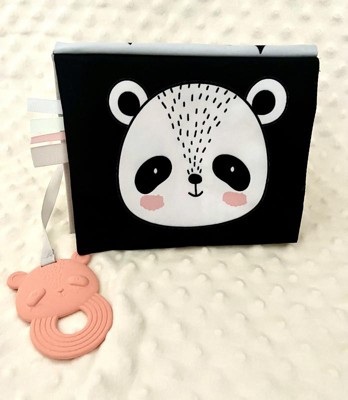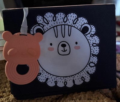 Black and white books are awesome for little babies, everyone should have one. This one is soft and every page has crinkles, making it engaging to multiple senses. Babies will love the mirror and the taggies coming off the side. Any color on this product is actually quite muted, so probably not too helpful while the baby is under six months. The teething toy is also thin.