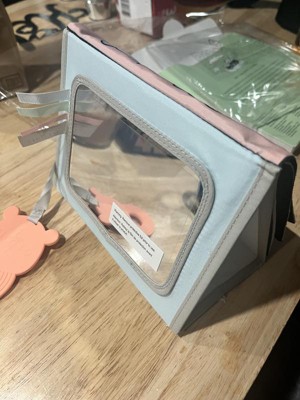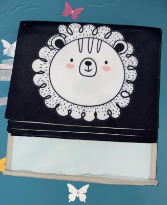Wow! This tummy time toy exceeded my expectations! It is super cute, with bold black and white animal prints that will catch a young baby’s eye. Each page “crinkles” which is extra fun. The mirror is a good size and there is even a soft silicon chew. The best part though is that it collapses flat and is small enough to easily put in a diaper bag or travel with. An awesome, no battery baby toy. Highly recommend.