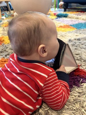 My son loves his tummy time book. His favorite part probably though is a teething toy. It’s one of his favorite teething toys. Sometimes he’ll just hold the toy and just bite on it. It seems to hold his attention span and make tummy time last a little bit longer than most things. Great quality he loves it. It’s really simple to use is easy to wash.