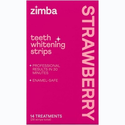 Zimba Teeth Whitening Vegan Strips Gentle, Enamel Safe, Fast Stain Removal, Mint Fresh, Easy 14-Day Treatment for a Whiter, Brighter Smile-Strawberry