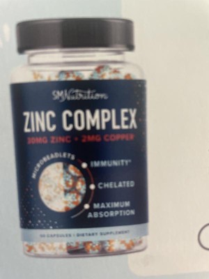 Zinc Complex Beadlets, Highly Absorbable Zinc Bisglycinate & Orotate with Chelated Copper + Vitamin B6 for Immune & Acne Support, SMNutrition, 60ct